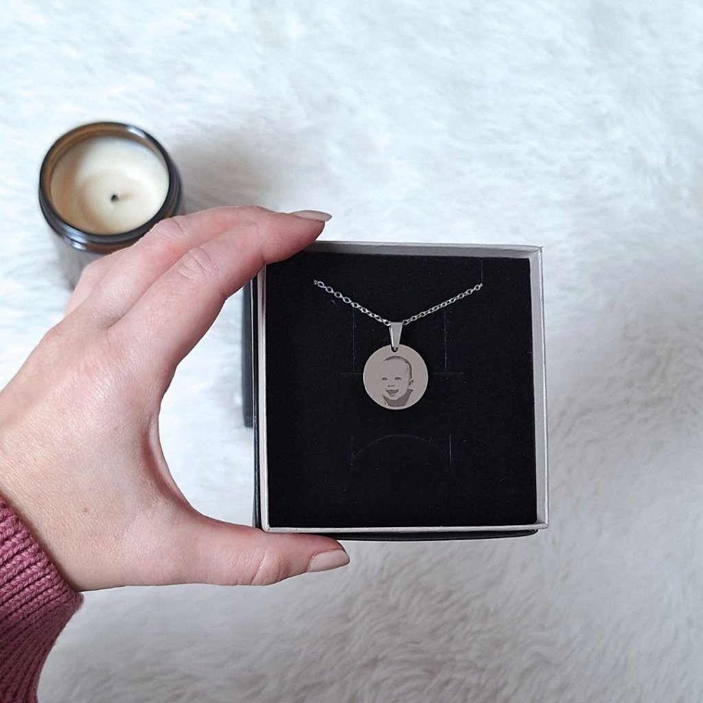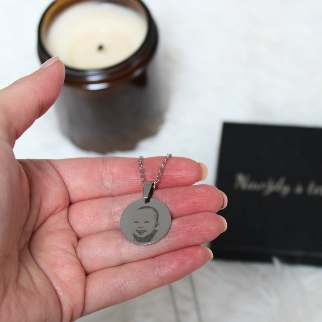 Tento ocelový přívěsek s gravírováním promění oblíbenou fotku ve vzpomínku, kterou můžete nosit každý den – elegantně, stylově a s emocí.