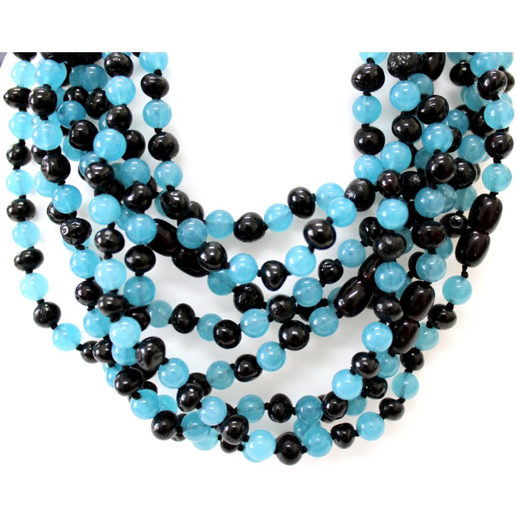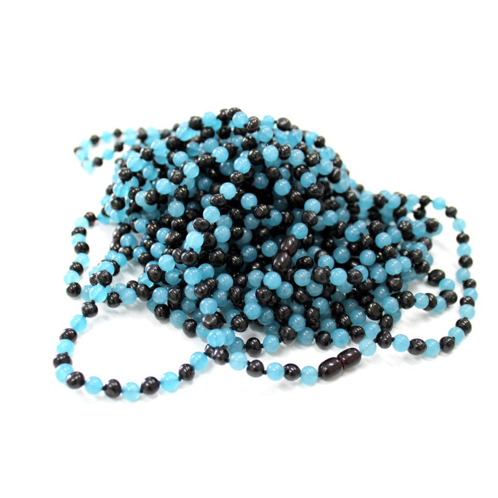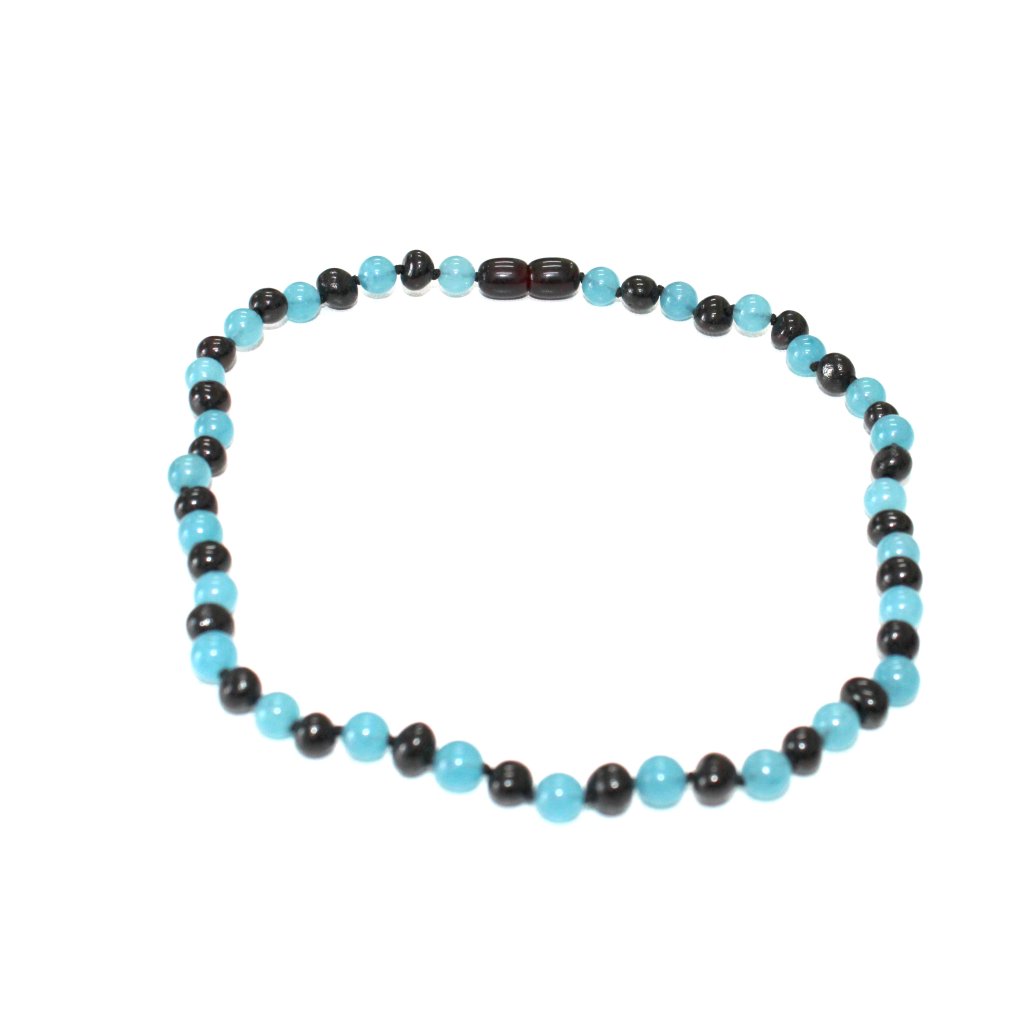 Jantarové korálky pro děti - rubínový jantar s akvamarínem - tmavší odstín