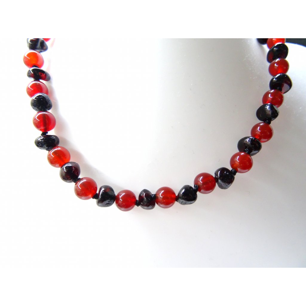 Jantarové korálky pro děti - rubínový jantar s červeným onyxem
