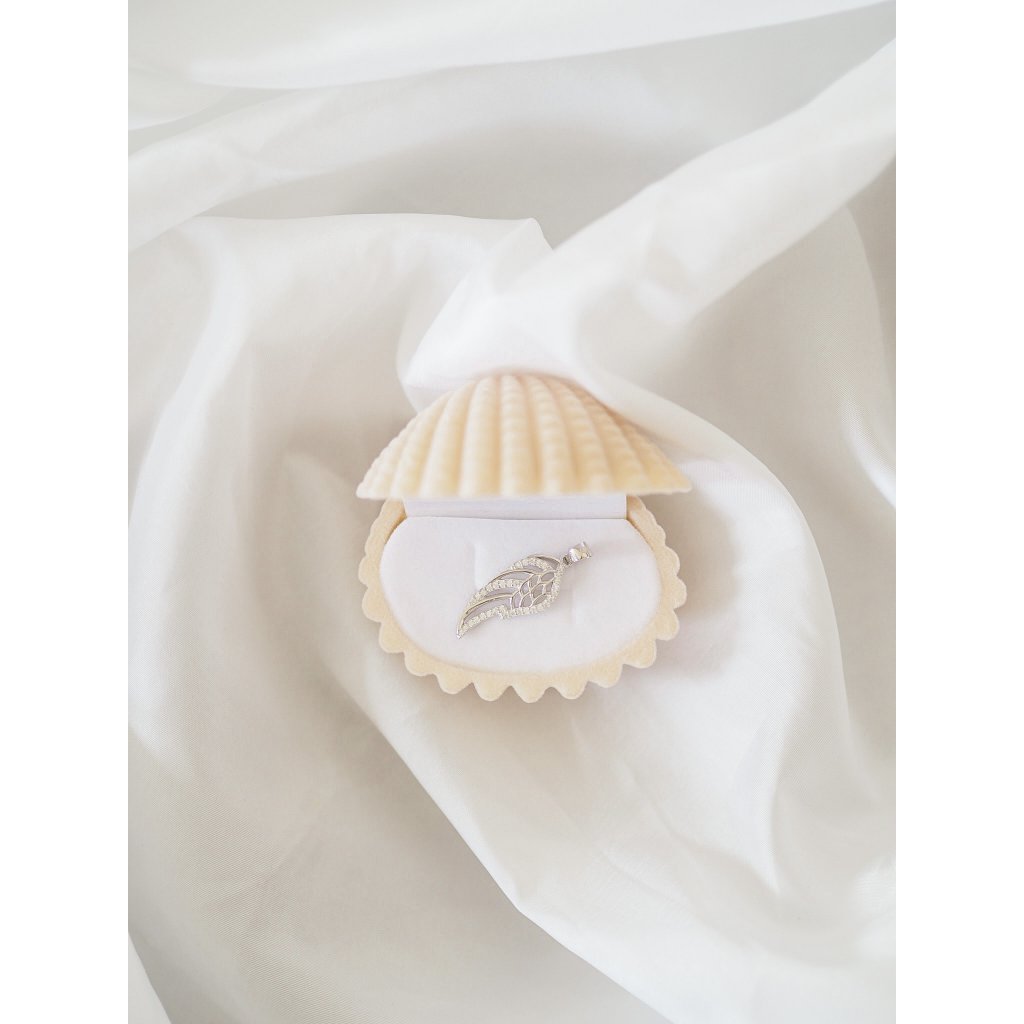 Krémová sametová krabička ve tvaru mušle je vhodná na prsten nebo náušnice