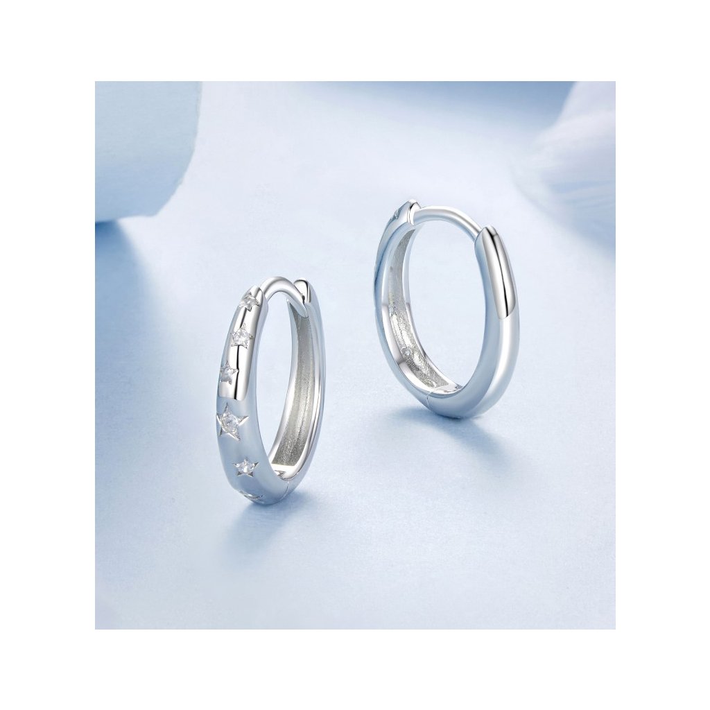 Stříbrné náušnice hvězdné kroužky pozlacené bílým zlatem