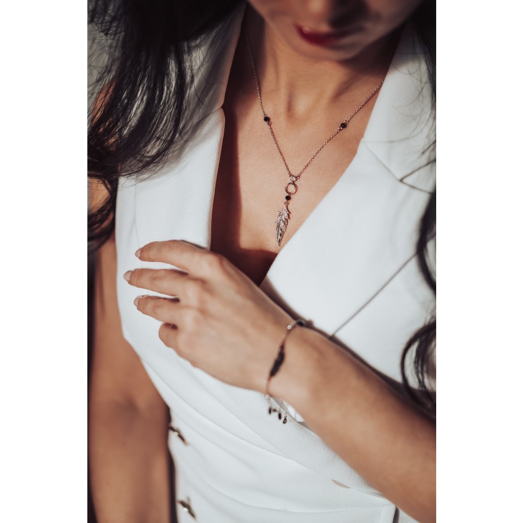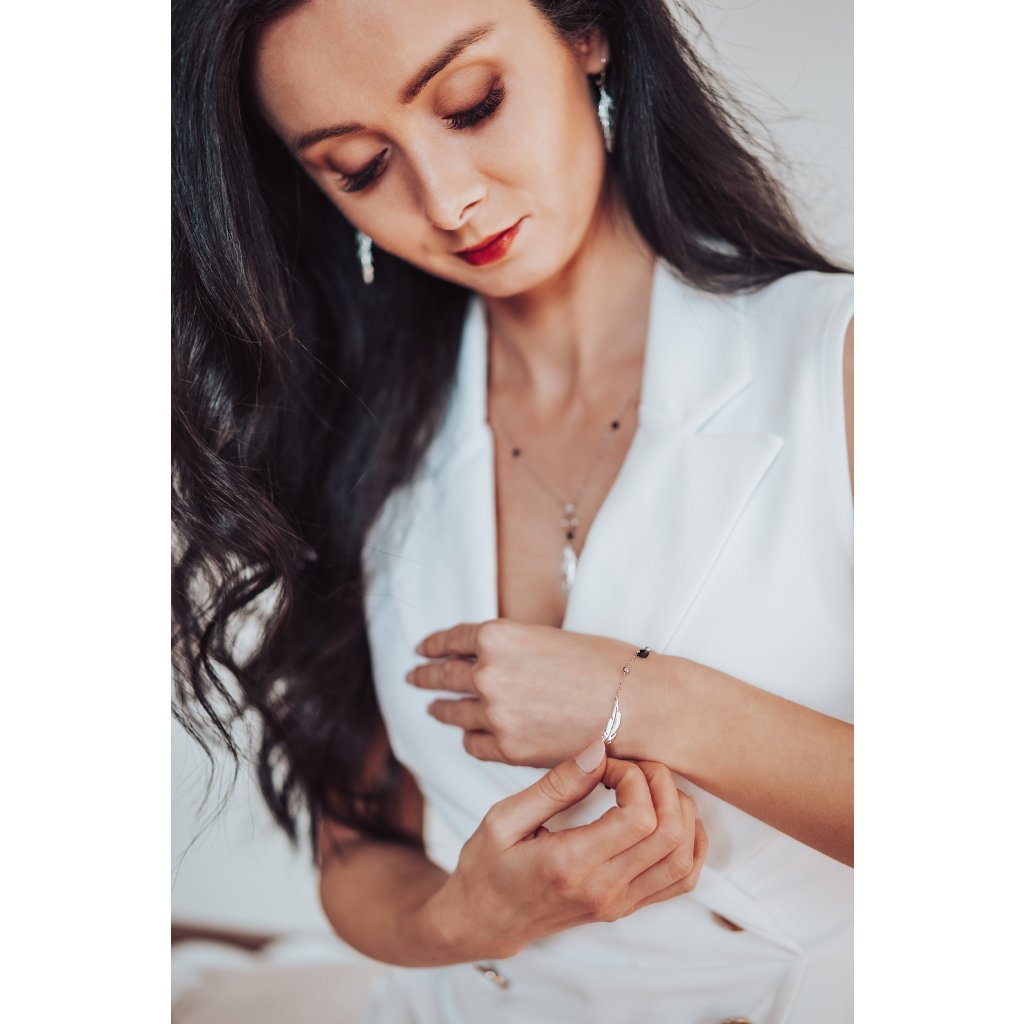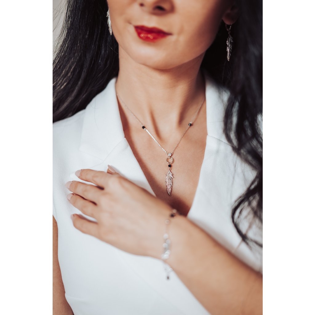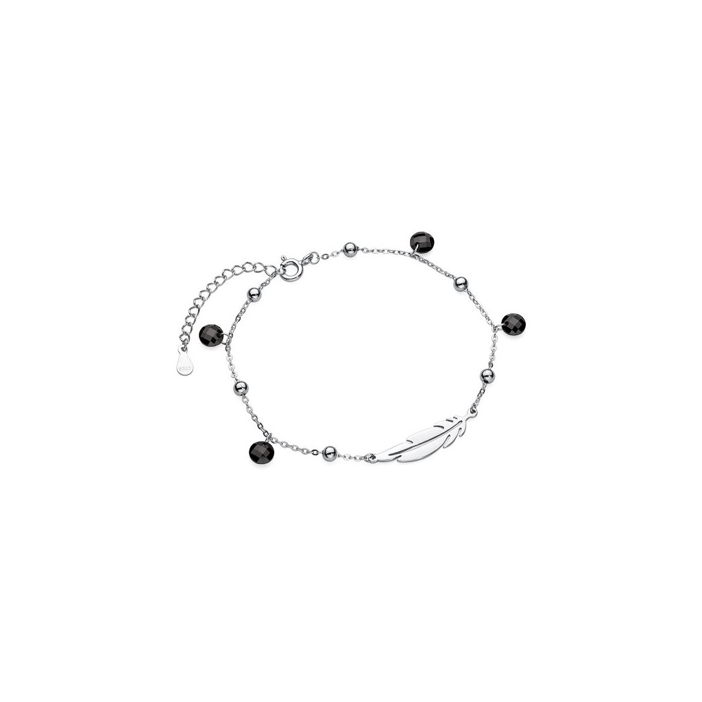 Stříbrný náramek pírko a černé zirkony