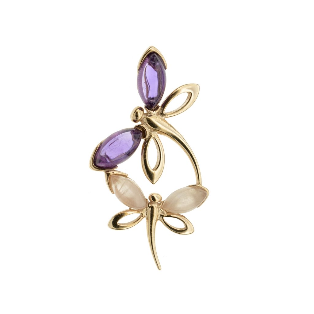 Stříbrný přívěsek vážky s ametystem a růženínem - zlacený