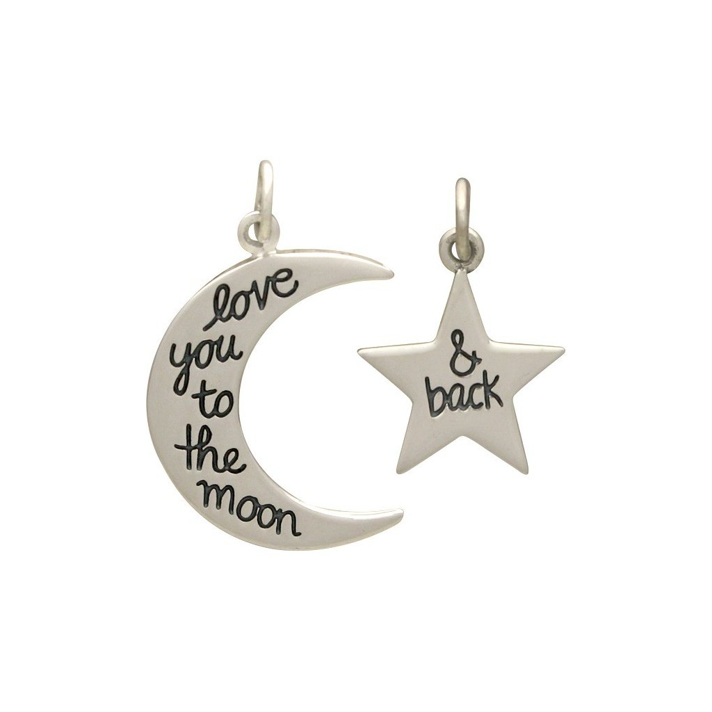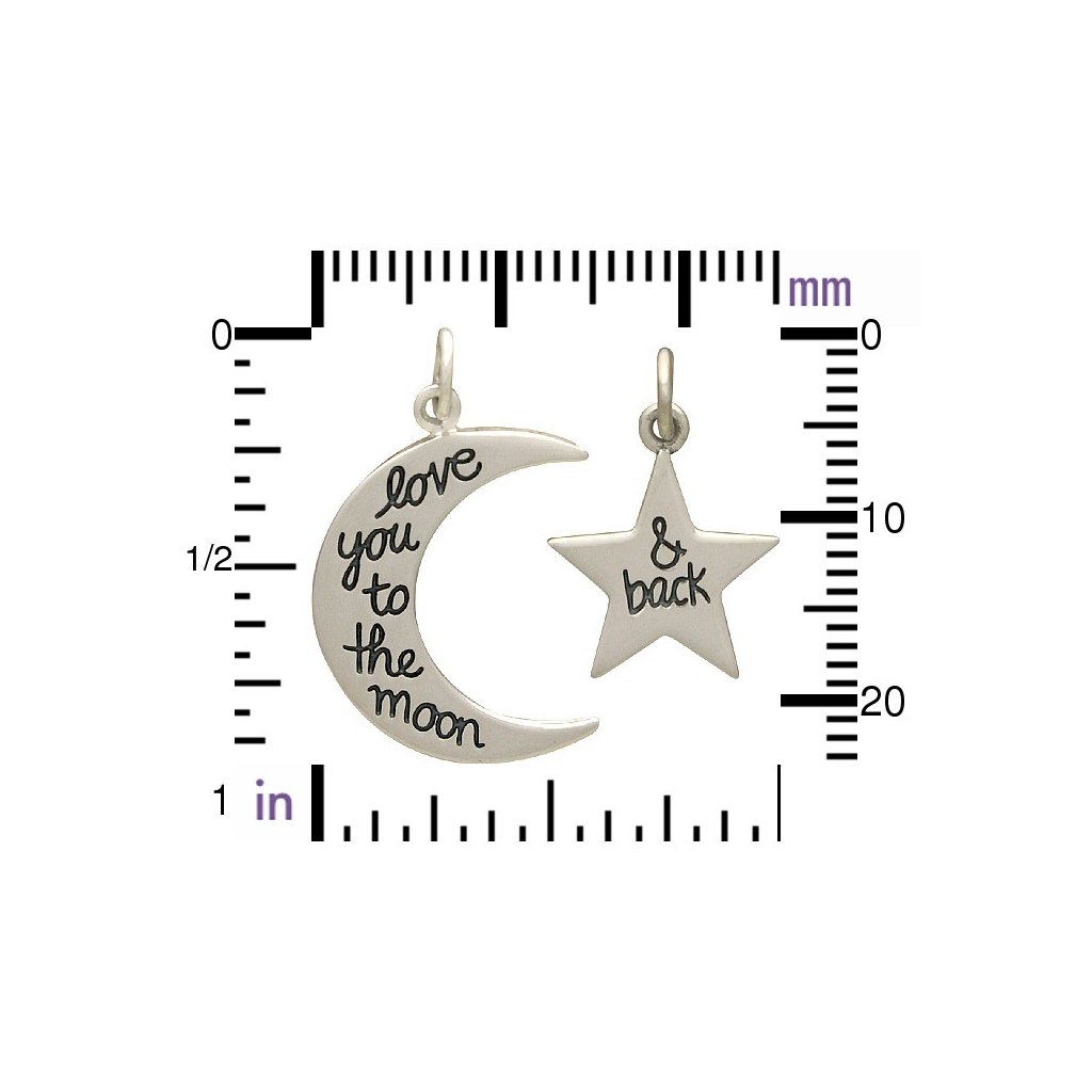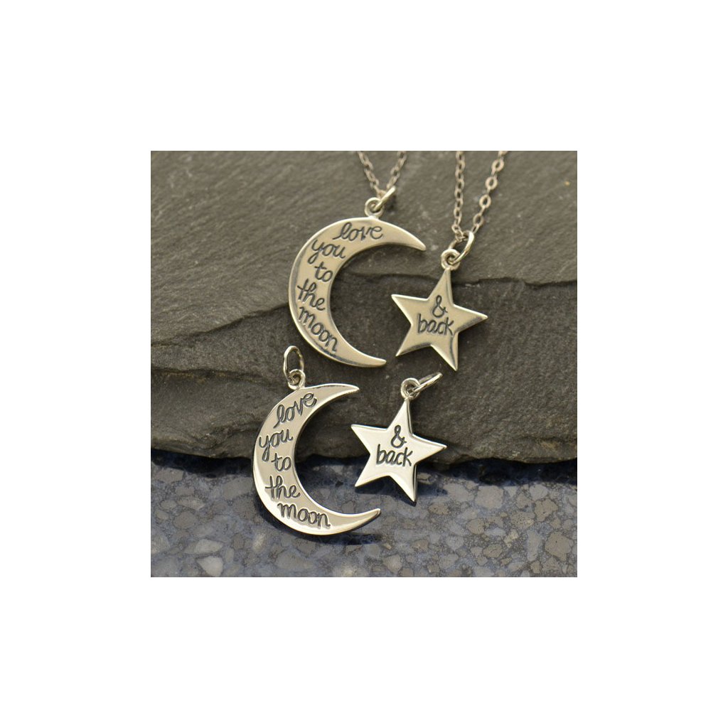 Sada stříbrných přívěsků - Měsíc a Hvězda s nápisem I love You to the Moon and back