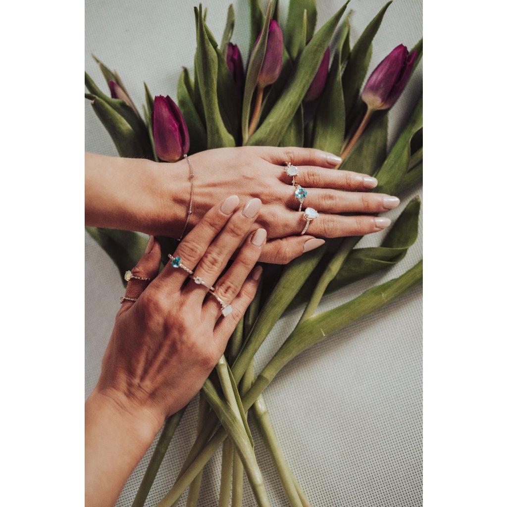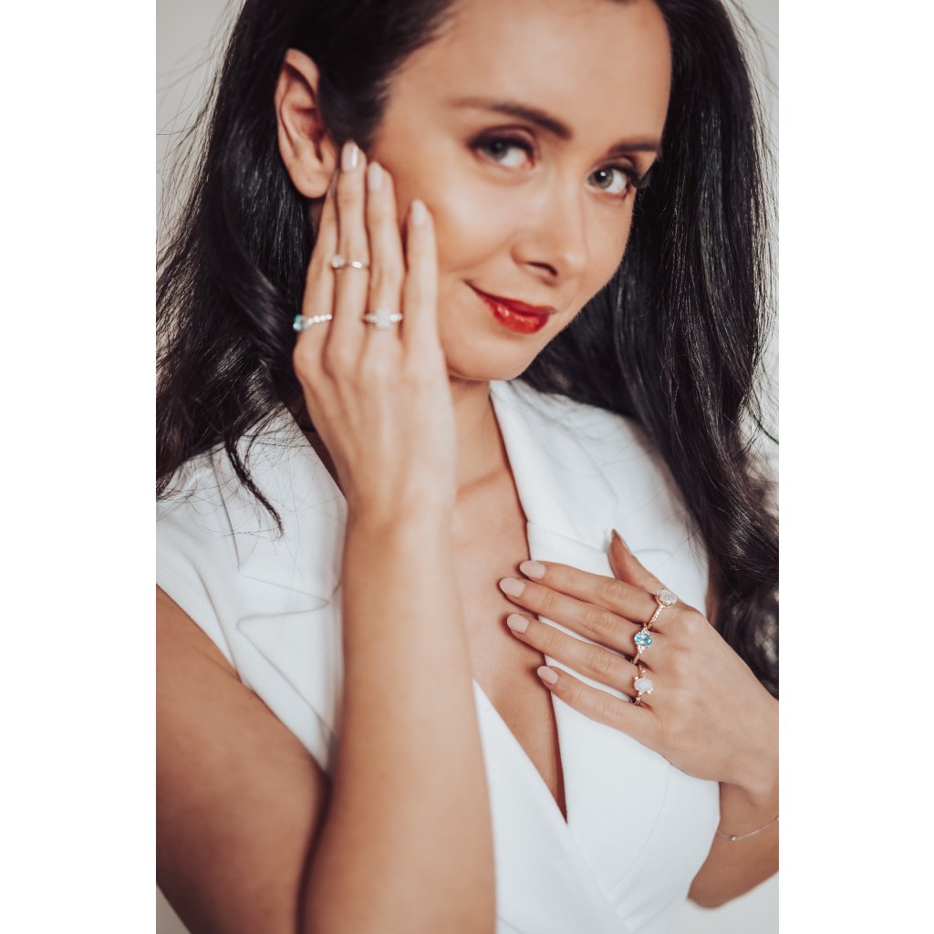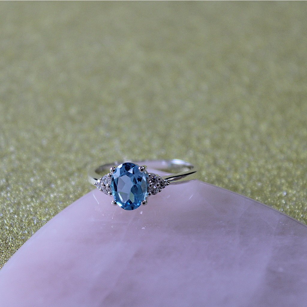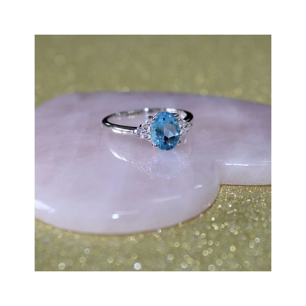 Rozměry kamenů: 7 x 5mm (modrý topaz) /1.6 mm (bílé topazy).