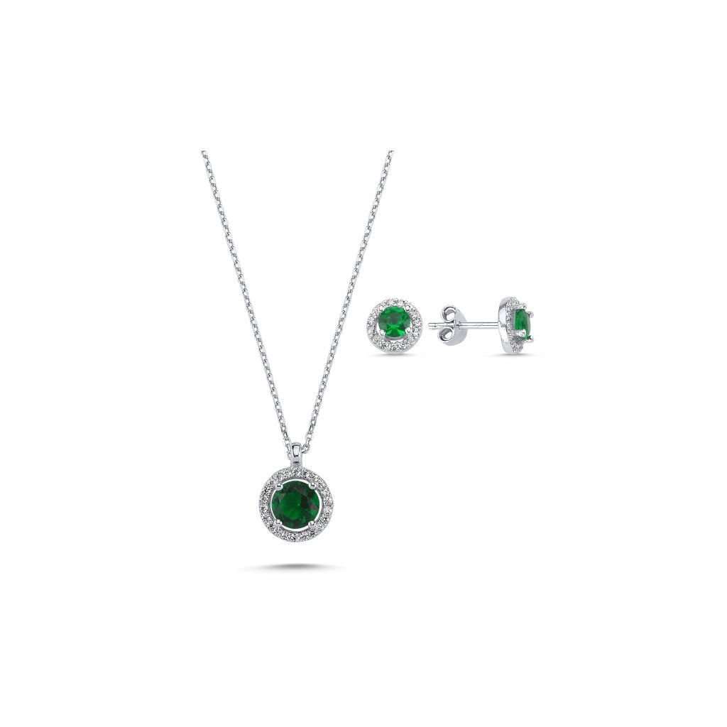 Stříbrná sada šperků kolečka zelený kámen - náušnice, náhrdelník