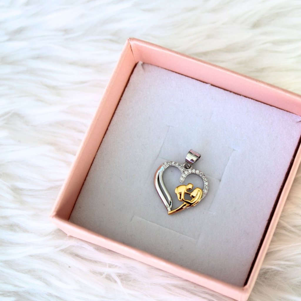Luxusní stříbrné srdce - přívěsek Maminka s dítětem