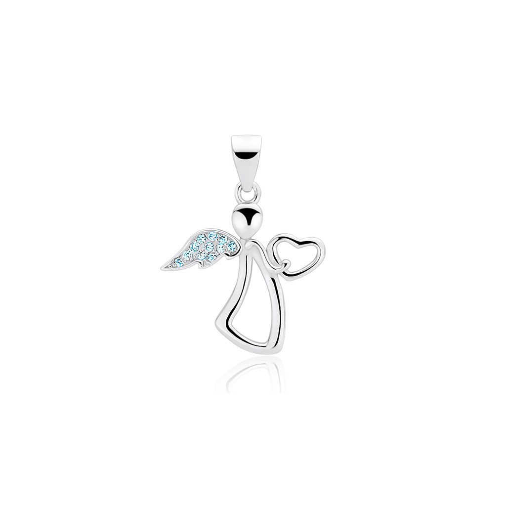 Stříbrný anděl se srdcem - modrá křídla