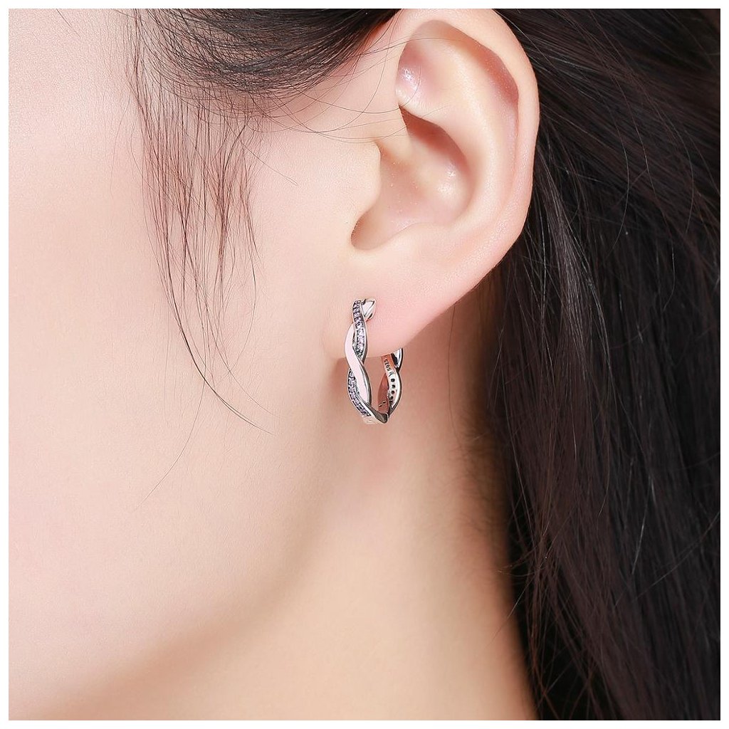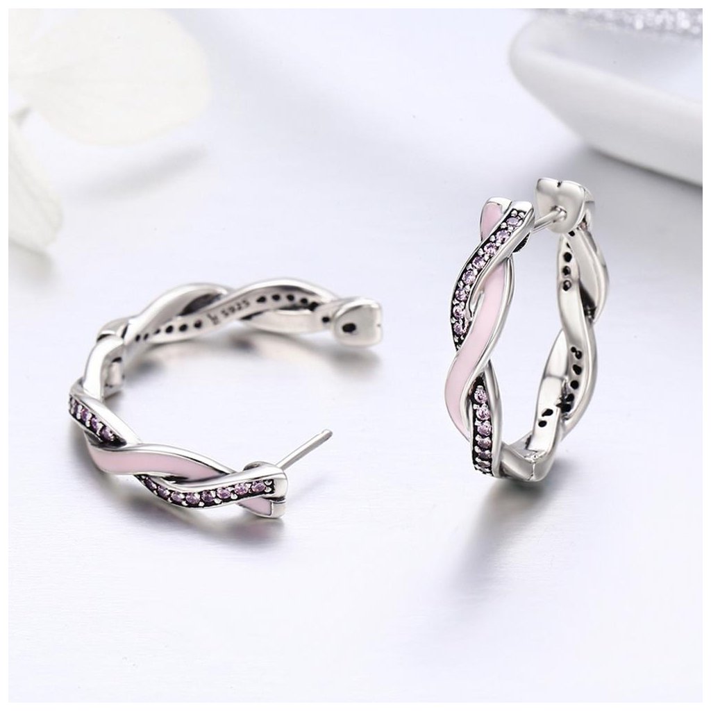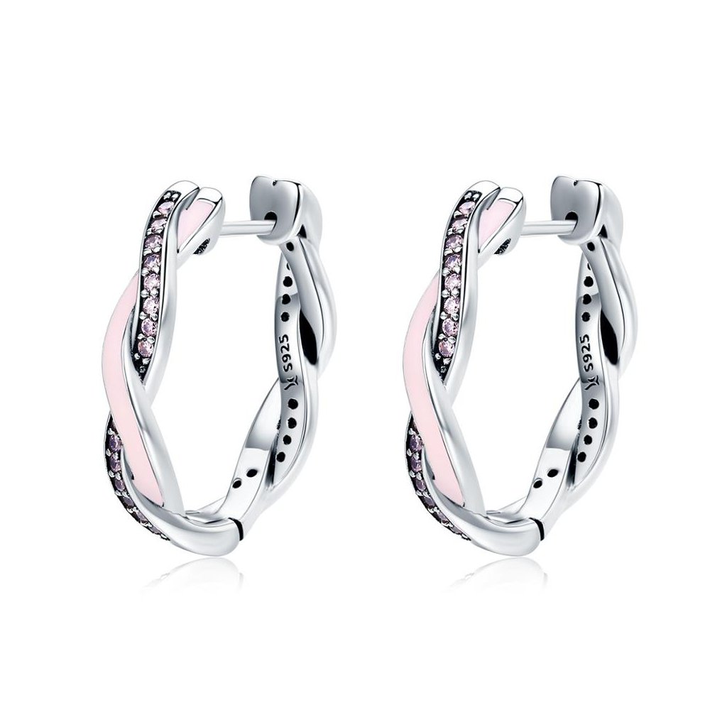 Stříbrné propletené náušnice - zirkon/růžový smalt